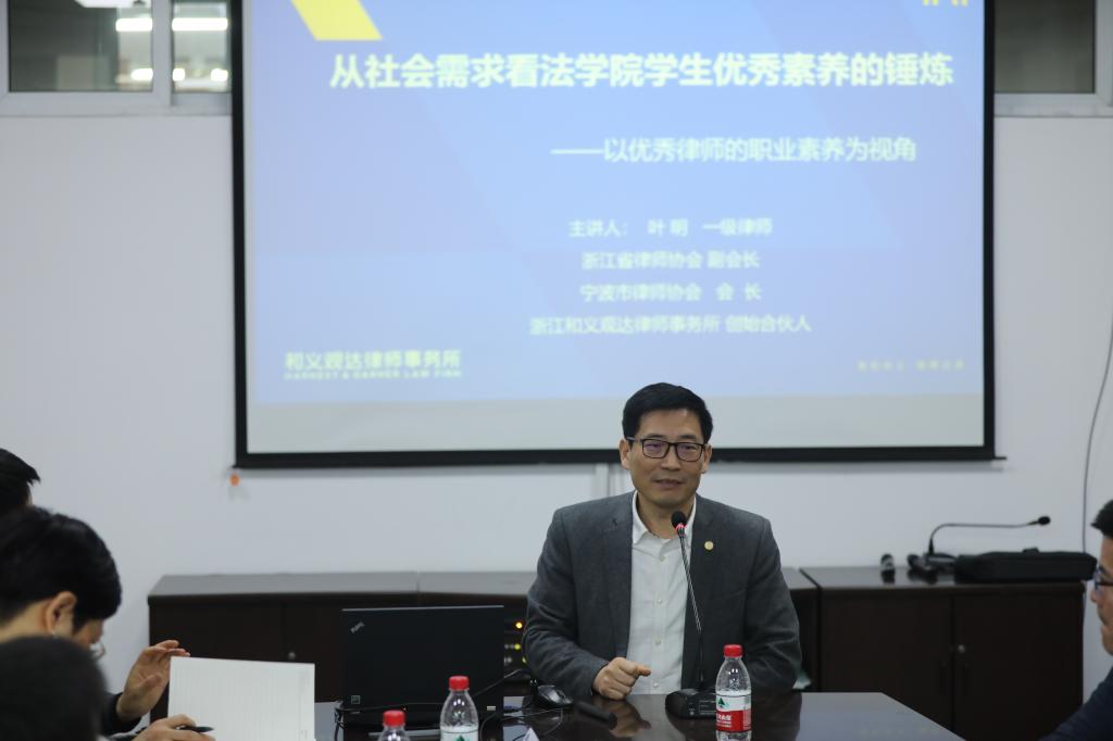 202会议室顺利举办。1988级法学专业校友、浙江省律师协会副会长、宁波市律师协会会长、浙江和义观达律师事务所创始合伙人叶明、金沙娱乐网