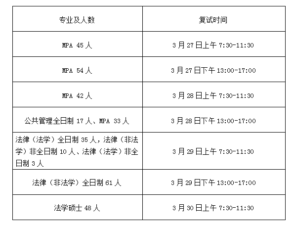 3.以同等学力参加复试的考生,在复试时须加试2门不同于初试科目的本科主干课程,加试科目需单独计分。公共管理硕士的思想政治理论考试在面试中进行,成绩计入复试总成绩,复试时间应适当延长。