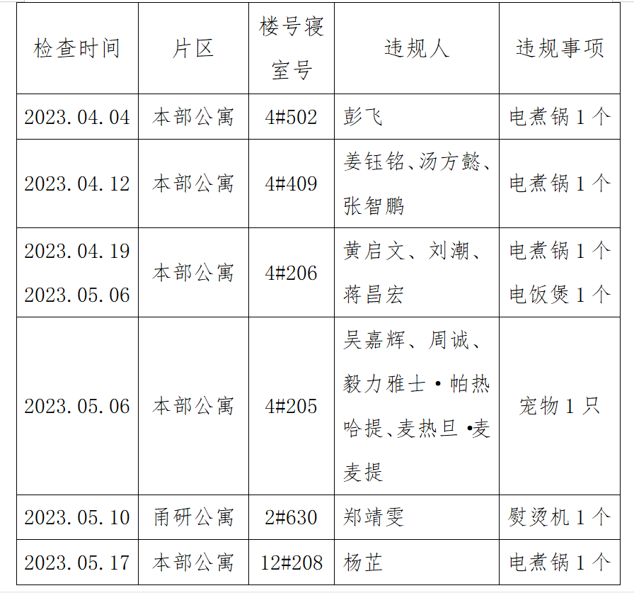 6间寝室有违禁电器情况,根据《金沙娱乐网