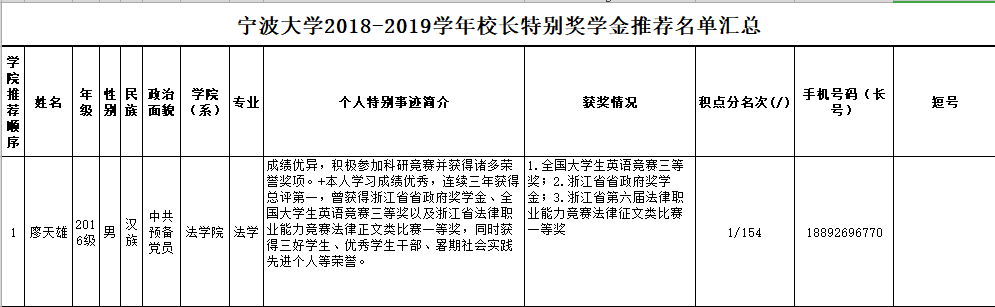 经学生本人申请,金沙娱乐网 奖学金评选小组资料审核,评选小组公开投票,现将2018-2019金沙娱乐网 校长奖学金法金沙娱乐网 拟推荐名单公示如下: