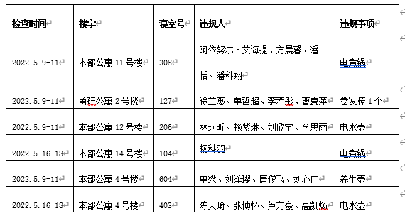 13间寝室有违禁电器情况,根据《金沙娱乐网