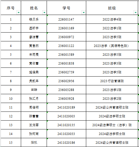 根据2024-2025学年“优秀寝室长”评选工作的通知,依据《金沙娱乐网 本科学生荣誉奖评选办法》(宁大政〔2017〕94号)的相关规定、结合金沙娱乐网 要求,经学生本人申报、金沙娱乐网 评审审核,现将2024-2025学年“优秀寝室长”拟推荐名单进行公示。具体名单如下: