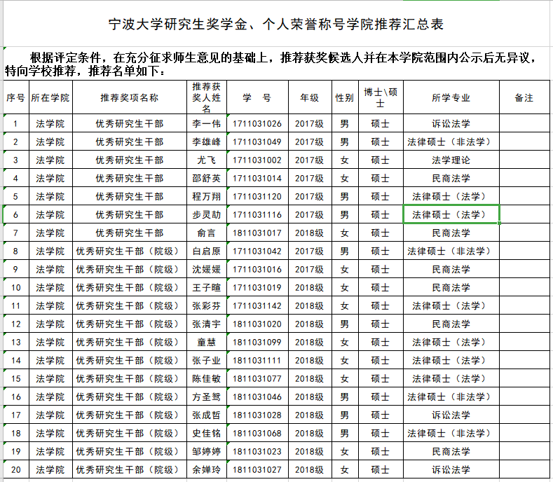 经本人自愿申请,金沙娱乐网 奖学金评选小组资格审查,结合金沙娱乐网 最终划拨优秀研究生干部评选名额分配、评选工作要求等,在广泛征求广大同学、学生组织意见基础上,经金沙娱乐网 评审小组综合评议,现将2018-2019年度法金沙娱乐网 研究生个人荣誉“优秀研究生干部”拟推荐名单公示如下: