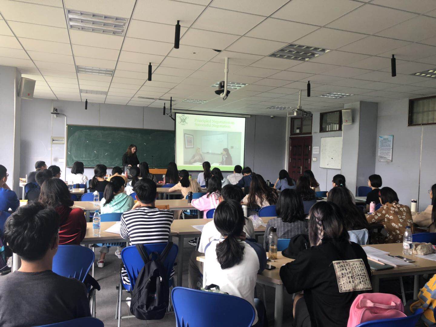 Jennifer教授为同学们带来了一场别开生面的互动式讲座,在同学们中间引起强烈反响。同学们表示谈判能力是衡量一个法律人能力强弱的重要标准,他们通过此次讲座收获了很多实用的谈判技能,也了解了域外律师的谈判技巧,受益匪浅。