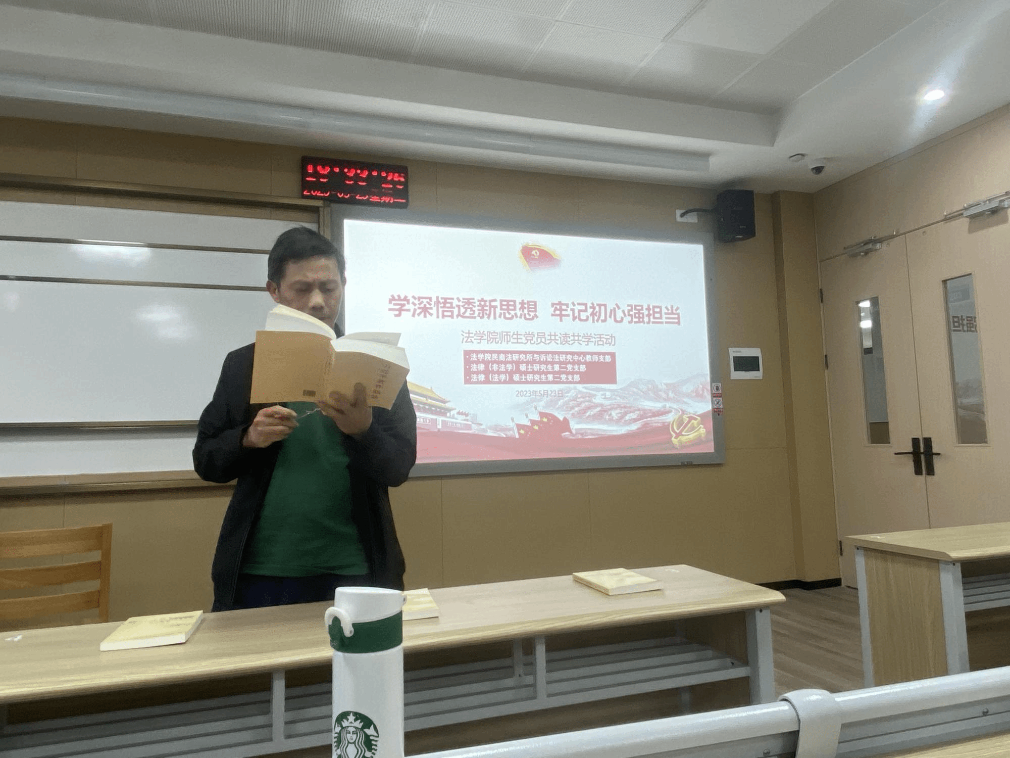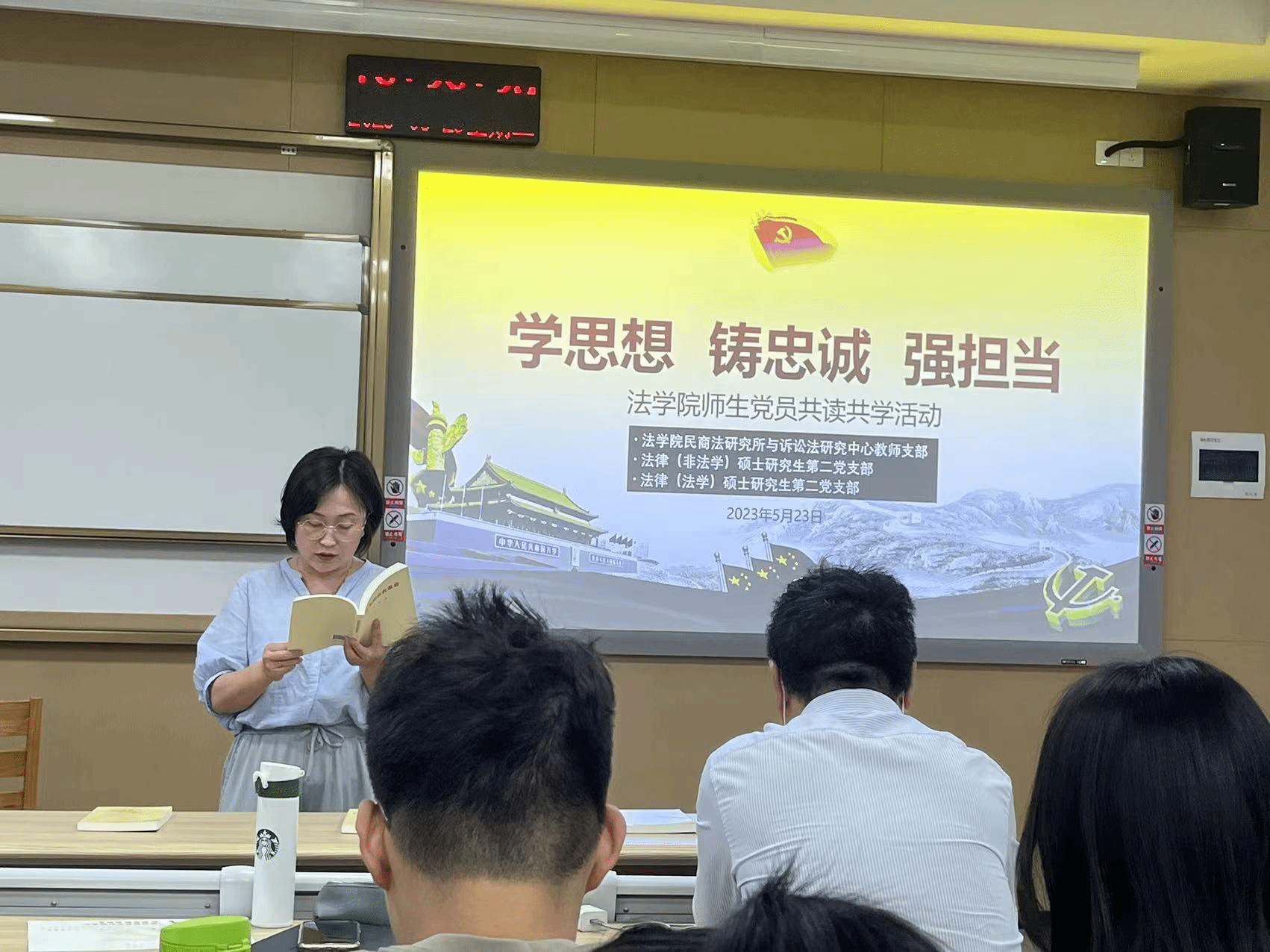 法律(法学)硕士研究生第二党支部、法律(非法学)硕士研究生第二党支部共同开展了“学思想 铸忠诚 强担当”师生党员共读共学活动,民商法研究所与诉讼法研究中心党支部书记刘满达老师以及师生党员代表20余人参加了此次活动。