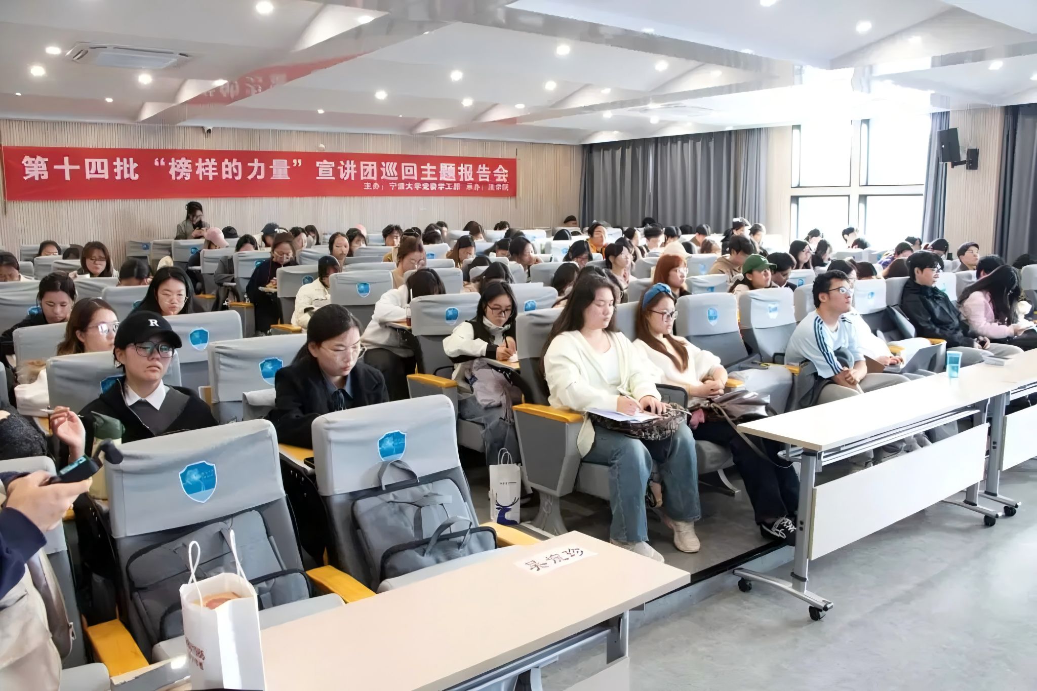以榜样之光照亮前行之路。在尤亦腾分享后,现场同学纷纷举手提问,从学生工作的实践方法到支教经历的成长感悟,互动交流的热切氛围让整场宣讲更添温度。相信在优秀青年榜样的激励下,广大同学将以更加饱满的精神状态投入到学习与工作中,让青春为中国式现代化挺膺担当,在服务社会、热心公益的同时书写属于自己的崭新篇章!在全场同学的热烈掌声中,此次“榜样的力量”专题讲座圆满结束。
