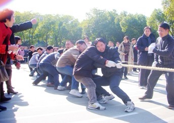 啦啦队齐声呐喊,不停地为他们擂鼓助威。在热情的呐喊声中,绳中间的红带两次移向法金沙娱乐网