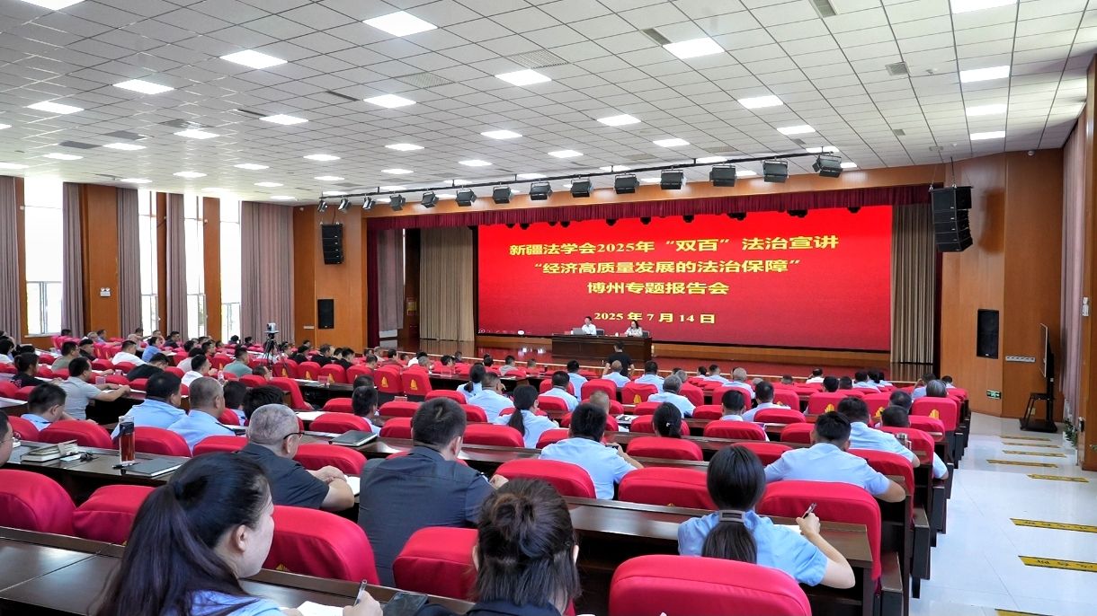 7月14日,金沙娱乐网 法金沙娱乐网 郑曙光教授应新疆法学会邀请,在博尔塔拉蒙古自治州作“双百”法治宣讲专题报告。此次宣讲既是新疆法学会2025年“经济高质量发展的法治保障”系列活动的重要一站,也是金沙娱乐网 法金沙娱乐网 “民营经济法治研究”优势学科成果首次在新疆宣讲。
