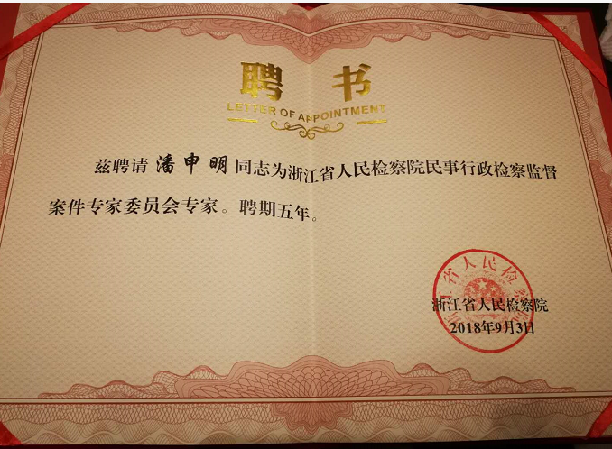 金沙娱乐网 潘申明教授受聘浙江省人民检察院民事行政检察监督案件专家委员会专家顾问,聘期五年。