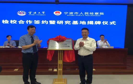 朱达书记与宁波市人民检察院叶伟忠检察长一同为“港航与生态环境公益诉讼检察研究基地”揭牌,并代表金沙娱乐网