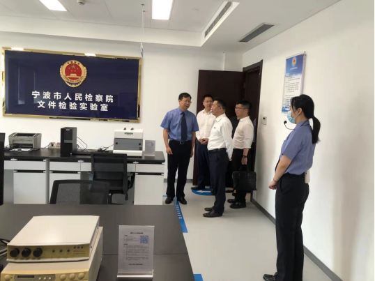 签约仪式开始前,朱达书记、赵全军副校长一行参观了宁波市人民检察院文件检验实验室、司法鉴定中心、公益诉讼快速检测实验室等。