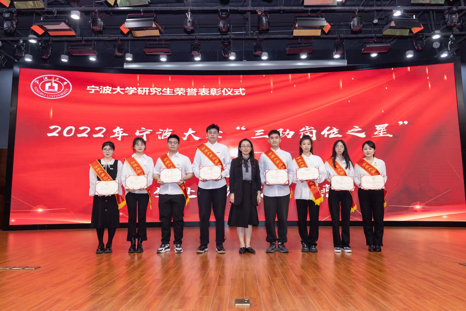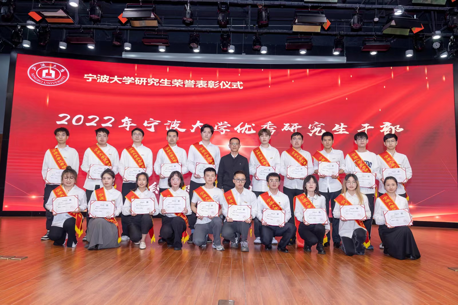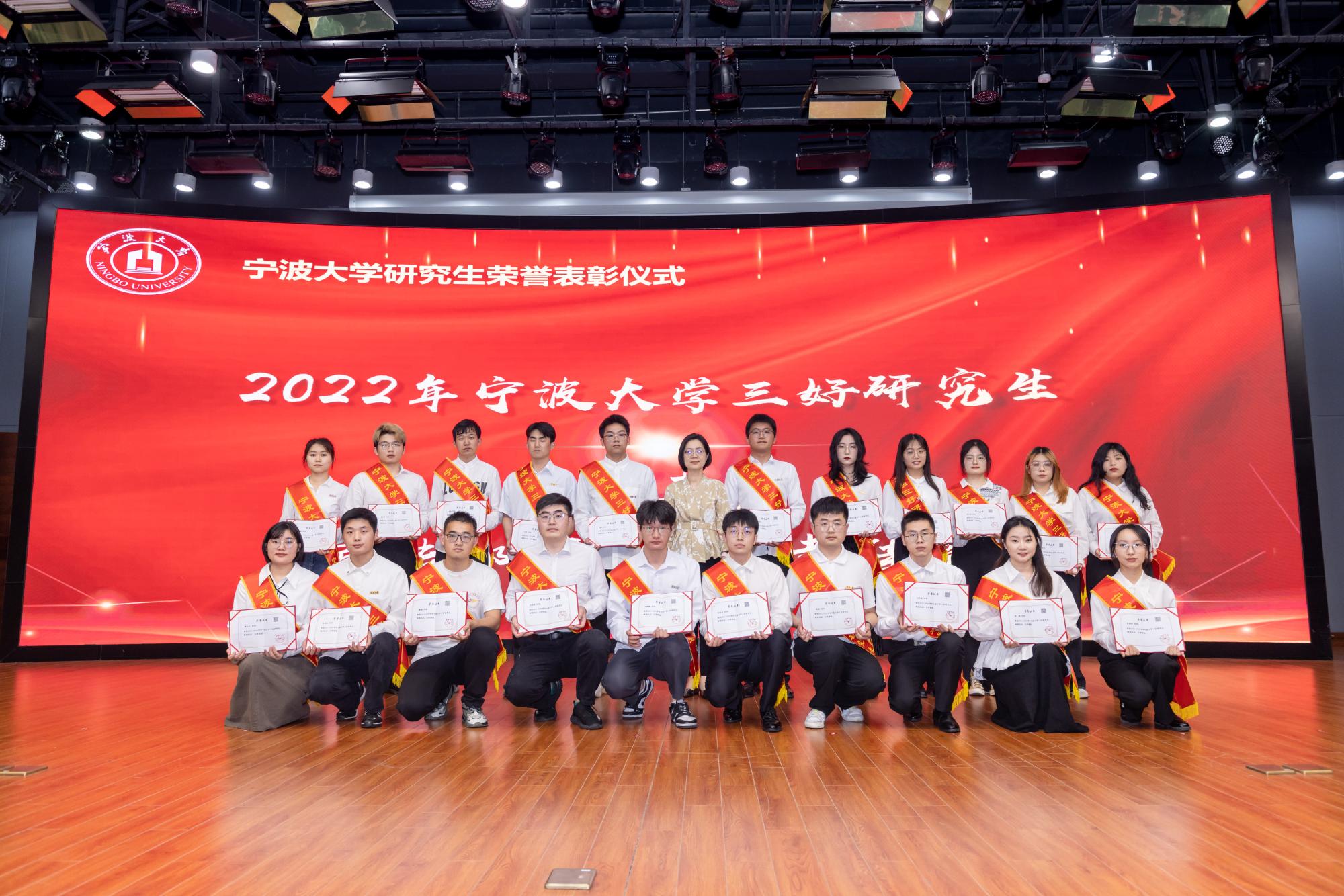 评选展示会后,现场举行了研究生荣誉表彰仪式。校党委副书记赵全军和相关职能部门负责人为2022年研究生国家奖学金、三助岗位之星、三好研究生、优秀研究生干部、千生走基层、宁波研究生学术节等奖项获奖团队和个人颁发荣誉证书。