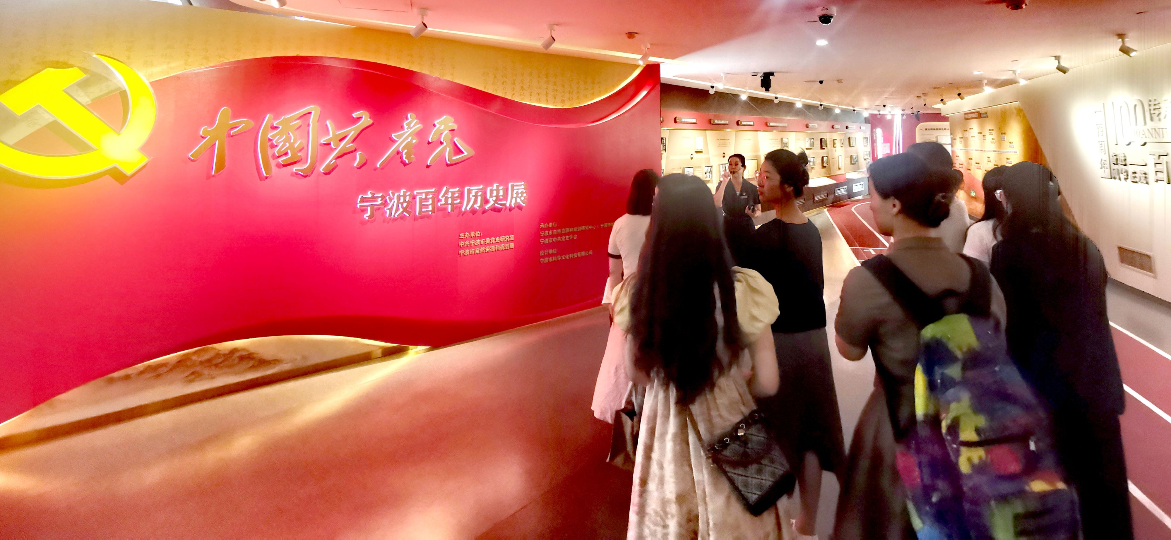 紧接着,支部党员参观了“中国共产党—宁波百年历史”主题展厅。沿着红色的时间跑道,伴随着讲解员的详细介绍,支部的党员们重温了建党百年以来宁波地区的重大党史事件。一张张珍贵的历史图片,一段段短小却震撼人心的文字介绍,让在场的党员们深刻地感悟到,百年来在中国共产党领导下,宁波人民经过浴血奋战、艰苦探索、不懈奋斗,谱写出的革命、建设、改革和复兴的壮丽篇章。在参观过程中,讲解员着重介绍了宁波帮人士对宁波地区发展做出的突出贡献,还特别提到宁波帮与金沙娱乐网