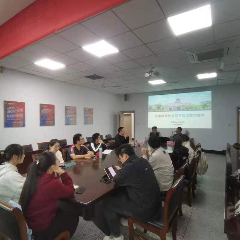 博士生导师、法理学教研室主任王彬教授为法学理论课程组带来题为《多学科融合背景下的法理学教学》的讲座。法学理论课程组部分教师和部分研究生参与了讲座。