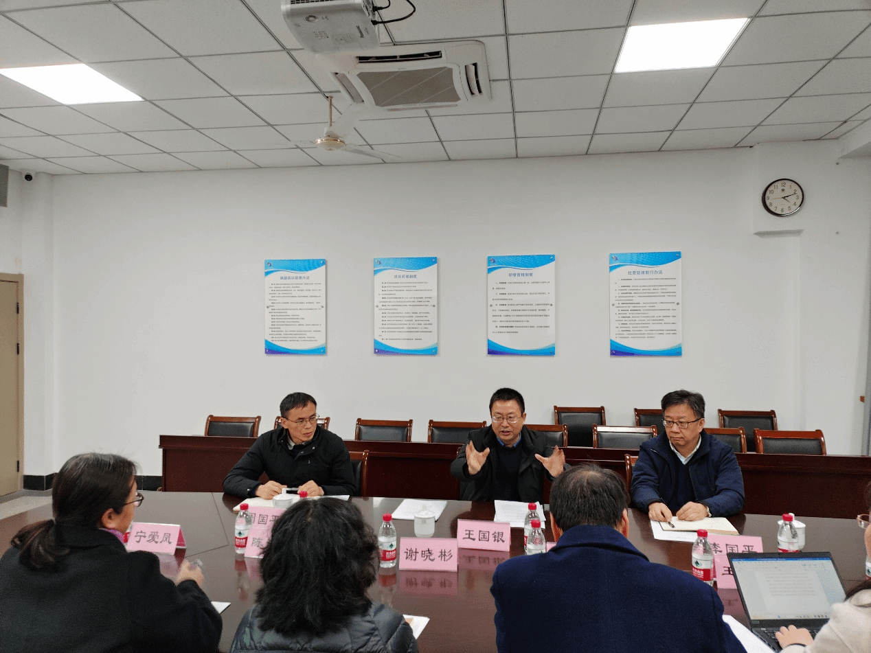 会议伊始,梁开银院长对王国银调研员表示热烈欢迎,并从基地建设背景、建设举措、建设成效、特色亮点和全面保障等方面详细介绍了涉外法治人才协同培养创新基地的建设情况。法律系主任谢晓彬从深化协同培养的育人机制、深化国际化工作、完善涉外法治教育教学体系、加强涉外法治金沙娱乐网队伍