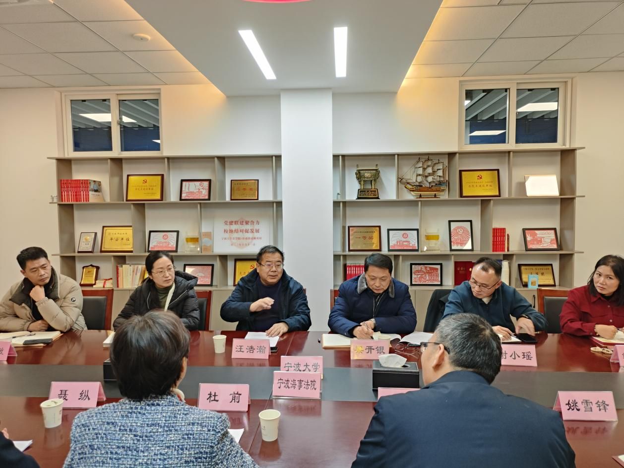 副校长、党委委员汪浩瀚的陪同下,宁波海事法院党组书记、院长杜前,党组成员、副院长聂纵,党组成员、副院长邬先江,研究室主任姚雪锋,办公室主任孔昱一行5人莅临法金沙娱乐网