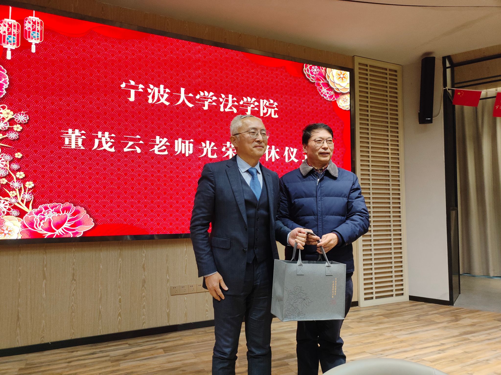 梁开银院长为董茂云老师送去了荣休纪念礼物。