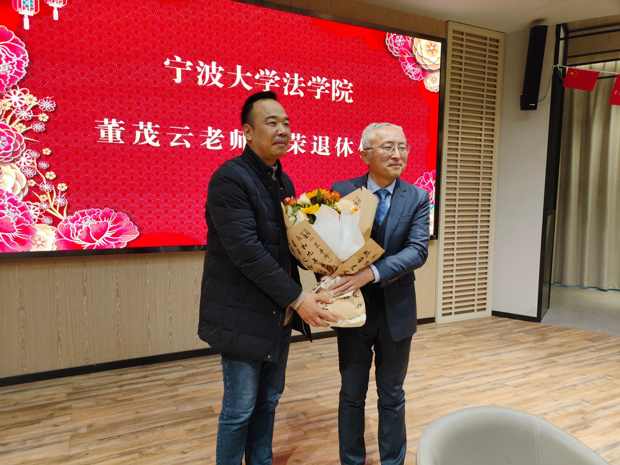 董茂云老师发表感言,感谢大家的一路支持和陪伴。很绅士的逐一感谢在场各位,并表示:人生的酸甜苦辣中在宁大的都是甜,回忆了十多年前从上海复旦加盟金沙娱乐网
