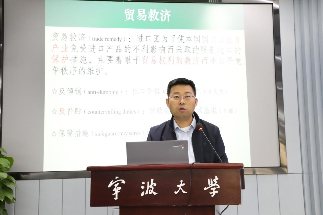 何跃军在主持上午讲座时提到:成立宁波市贸易救济研究院让教育部涉外法治人才培养协同创新基地更加落地,我们要团结一切可以团结的力量,发挥金沙娱乐网