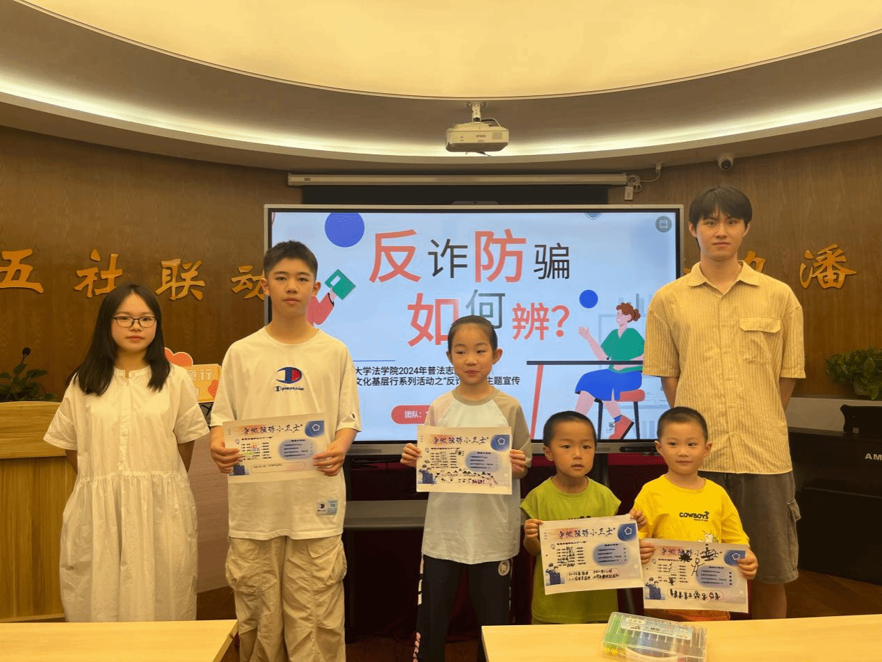 研究生“知法守法与法同行”小分队的成员在潘火街道新时代法治实践站组织的“青少年法治课堂”系列活动中开展了一次“反诈防骗”主题普法宣传。