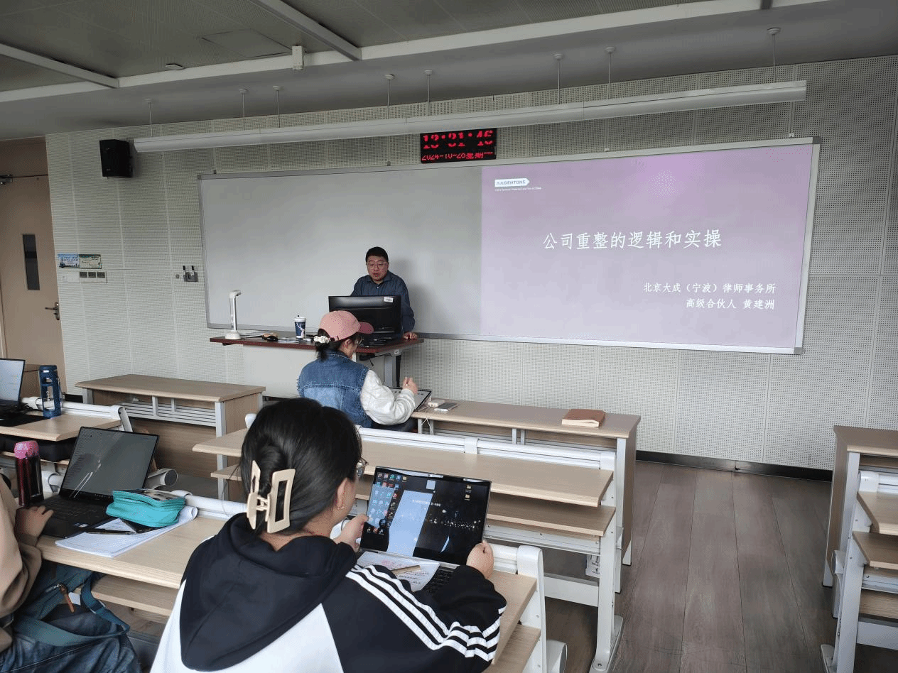 商法课程组特别邀请到北京大成(宁波)律师事务所破产团队资深管理人黄建洲律师,为同学们带来一节生动多彩的实务经验分享课。本次课程是从实务角度对公司重整基本逻辑的审视,帮助同学们加深对破产法相关内容的理解。
