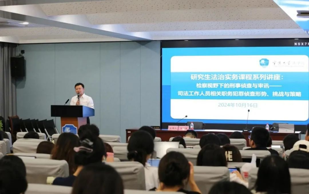 2024年10月16日晚上18点,研究生法治实务课程系列讲座“检察视野下的刑事侦查与审讯——司法工作人员相关职务犯罪侦查形势、挑战与策略”的讲座在法金沙娱乐网