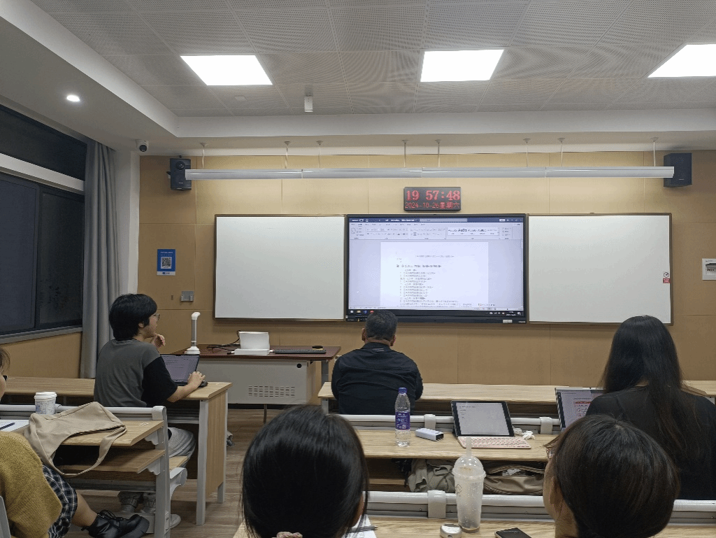 交流会上,雷季瑶同学、俞璇同学和钟瀚民同学分享了自己毕业论文的选题和论文思路,杜寅老师依次给出了相应的点评和建议。