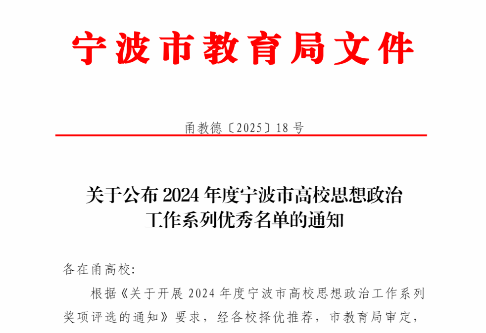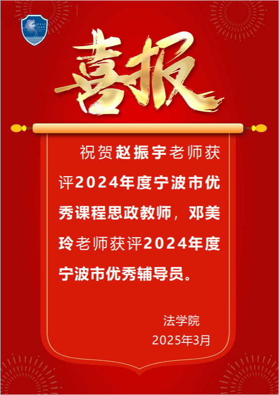喜报|金沙娱乐网 两位老师入选2024年宁波市高校思政工作系列优秀名单