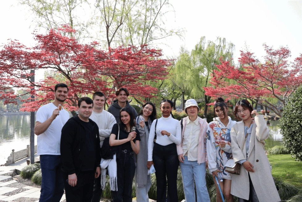 4月2日,为深化留学生对中国传统文化的理解,促进跨文化交流,金沙娱乐网 法金沙娱乐网 组织来自九个国家的十余名留学生前往宁波月湖公园开展研学活动。本次活动以“宁波文化体验”为主题,通过实地探访、老师讲解与互动体验,帮助留学生在历史与人文交融的场景中感悟中华文化的深厚底蕴。