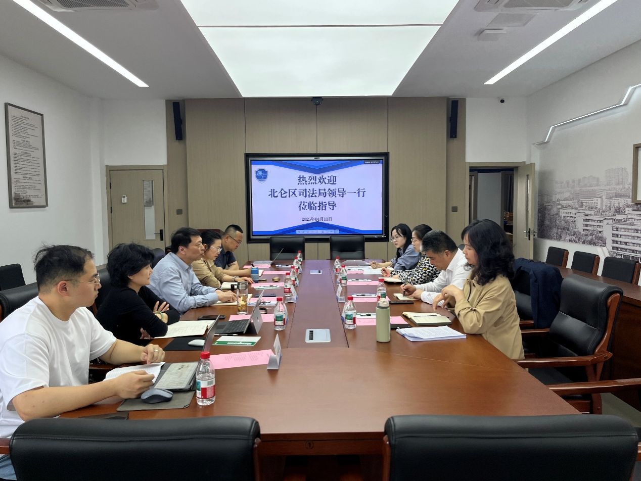 2025年4月11日,北仑区司法局局长卢国杰、副局长谢隽、法律援助中心主任谢燕娜、政府法律事务科科长沈吉等莅临法金沙娱乐网