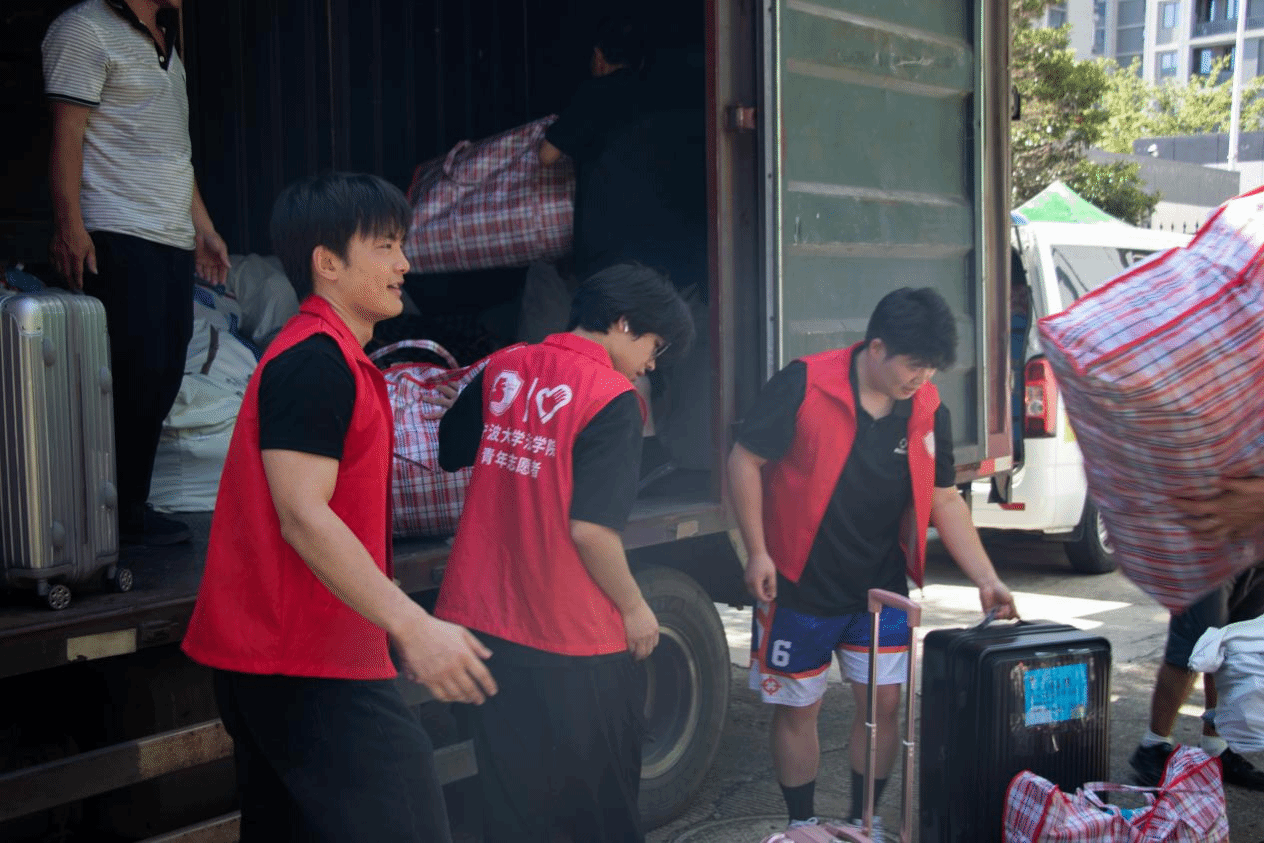 2024级班主任及辅导员的带领下,22名志愿者迅速集结,帮助同学们搬运沉重的行李、协调搬运流程,确保行李顺利装车、运输。在大家的齐心协力下,搬迁现场秩序井然,极大地提高了搬迁效率,保障了搬迁工作的顺利推进。部分同学也对志愿者们的热情帮助表达了诚挚感谢。