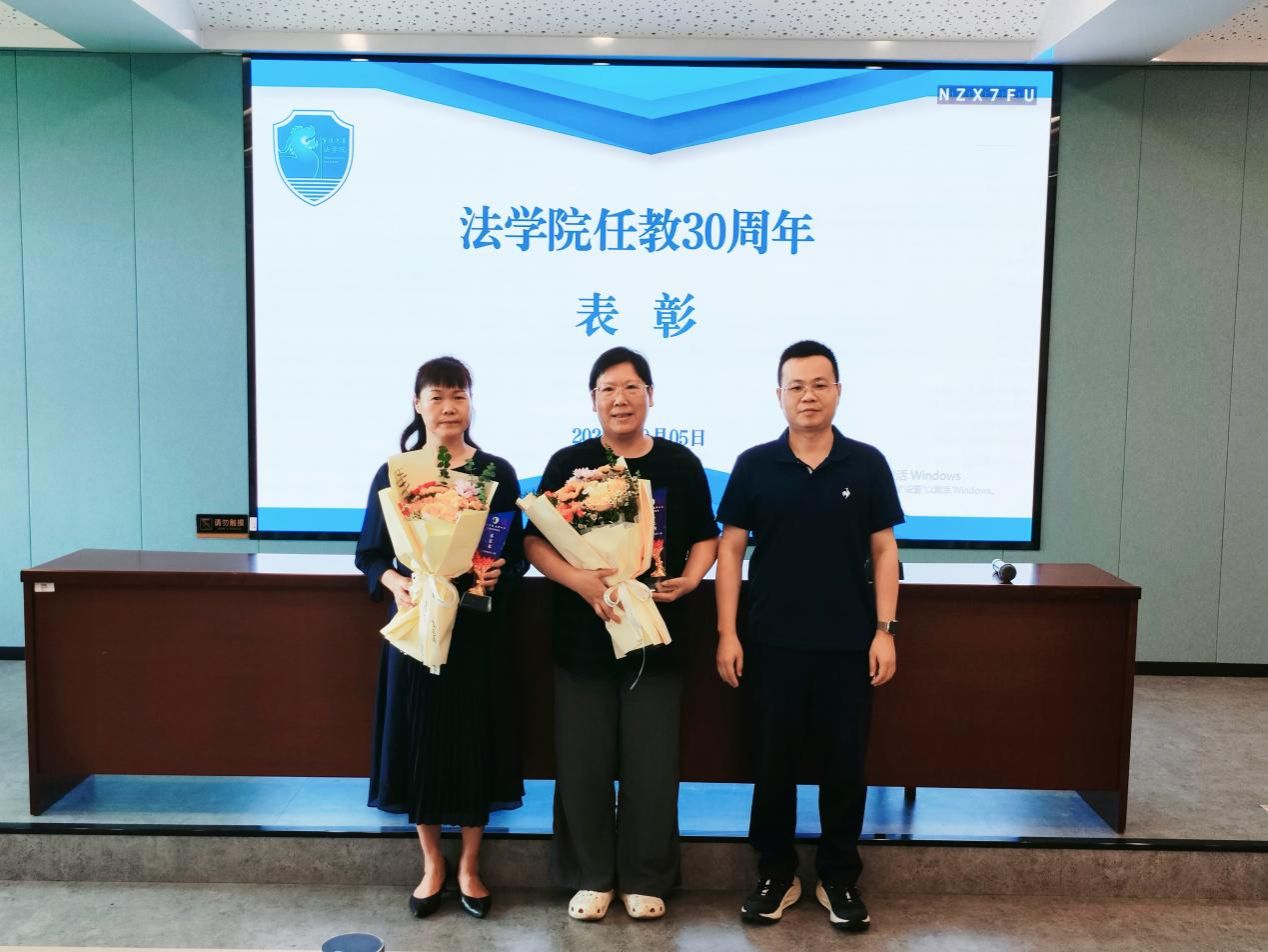 吾爱吾师,桃李有声。 “吾爱吾师”我最喜爱的老师评选结果揭晓,法律系吕双全、朱亚芬、朱朝晖、乔宜梦、余地、张梁、魏丽,公共管理系王婉娟、阳晓伟、张尧十位老师光荣上榜。工会主席王伟、院长梁开银为老师们颁发学生设计的“小獬豸”奖杯,并动情寄语:“金杯银杯,不如学生的口碑;金奖银奖,不如学生的夸奖。”