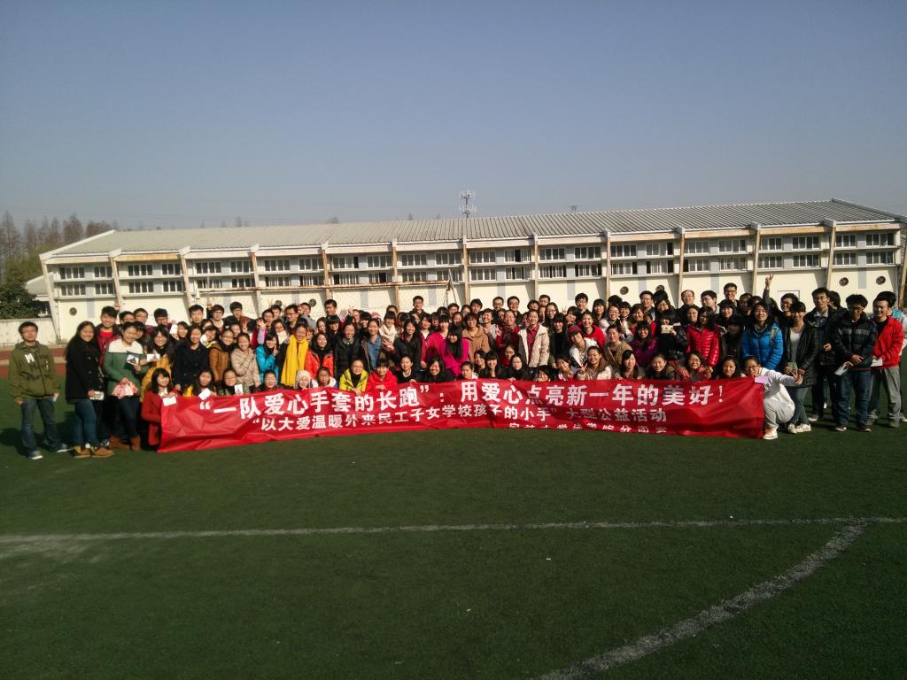 的孩子。“一队爱心手套长跑”大型公益活动在新年的第一天拉开帷幕,有200余名同学报名参加。