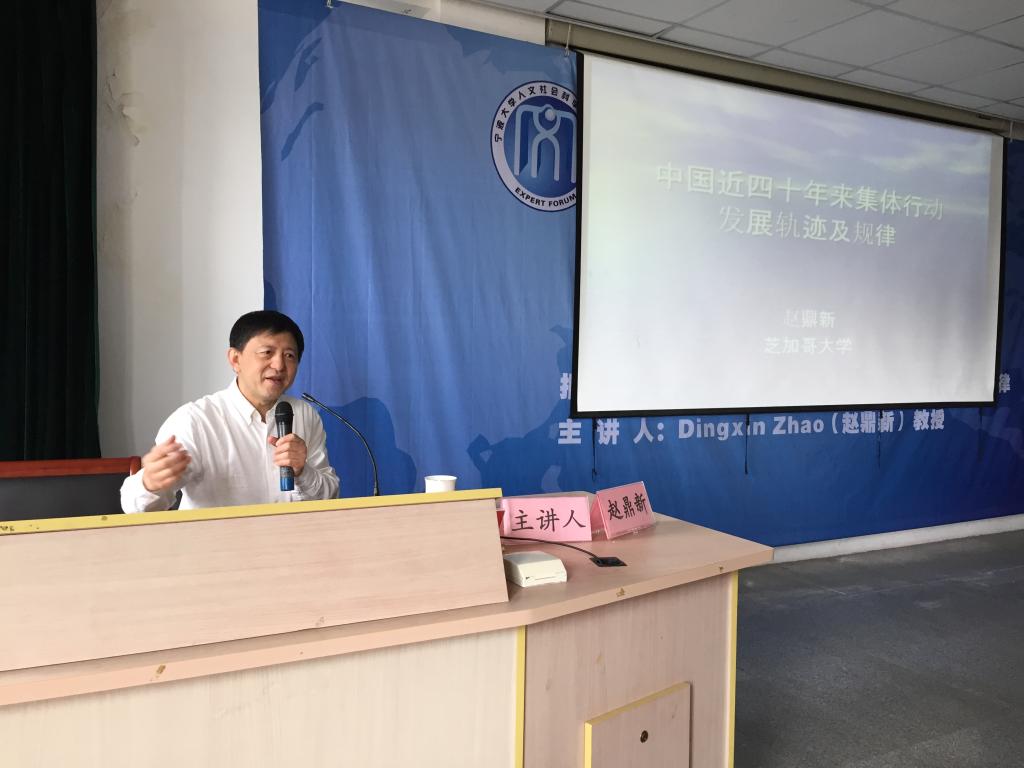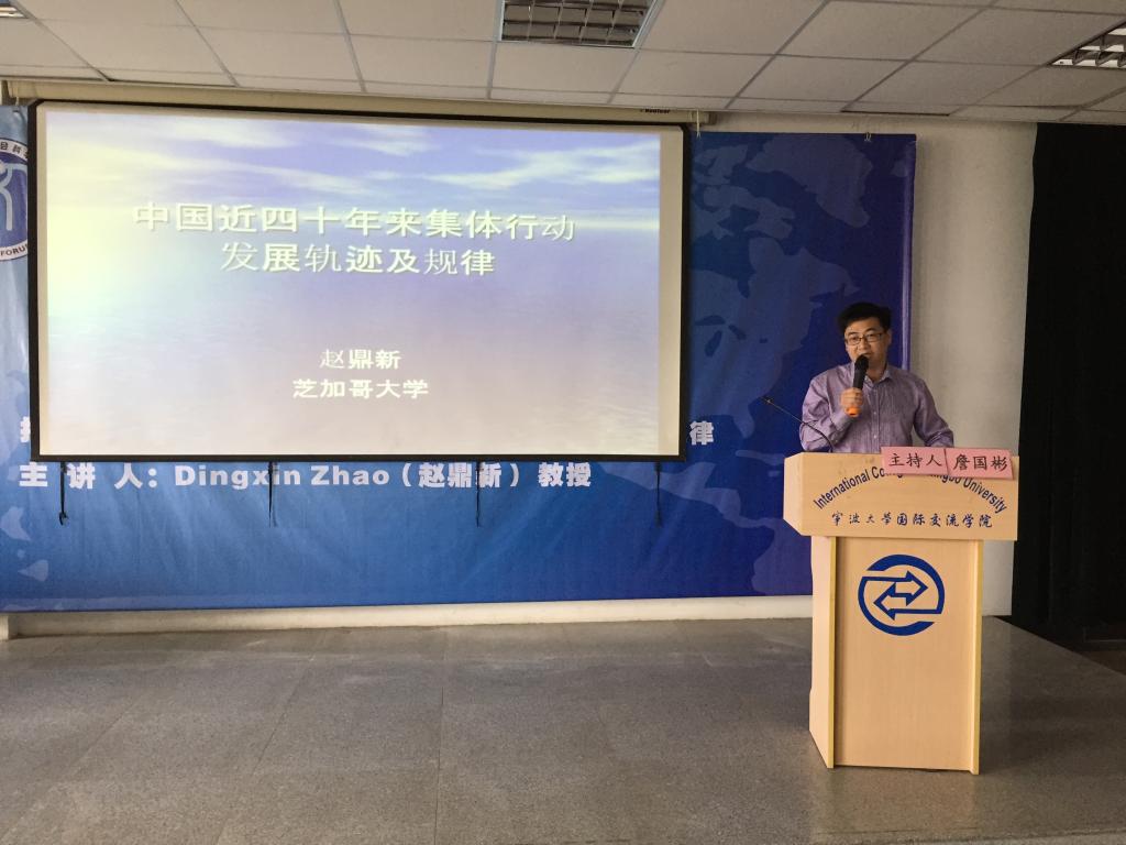 赵鼎新主要研究方向是历史社会学、社会运动、社会变迁、经济发展与民主转型,其研究成果在国内外学术界有着较大的影响。讲座中他以改革开放后集体行动发展的四个阶段为主线,站在国外的视角,从比较法的视野来谈自己对中国集体行动的体会。他认为1976年以前的集体行动是国家主导型的,而改革开放以后的集体行动发展逐渐与国家的政策与时代背景紧密结合。赵鼎新详细介绍了“1976—1989”、“1992—2002”、“2002—2012”、“2012——”四个阶段中集体行动的特点,大规模的集体行动在逐渐变少,政治化集体行动逐渐趋向经济利益的运动,新型的抗争方式在不断涌现。他通过丰富的举例以及幽默生动地讲述,为在场师生呈现了近四十年来我国集体行动的发展轨迹及规律。