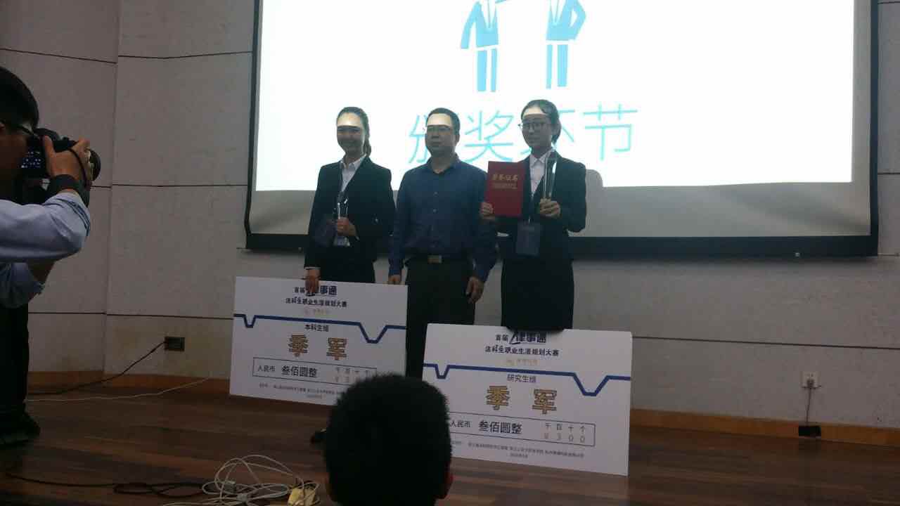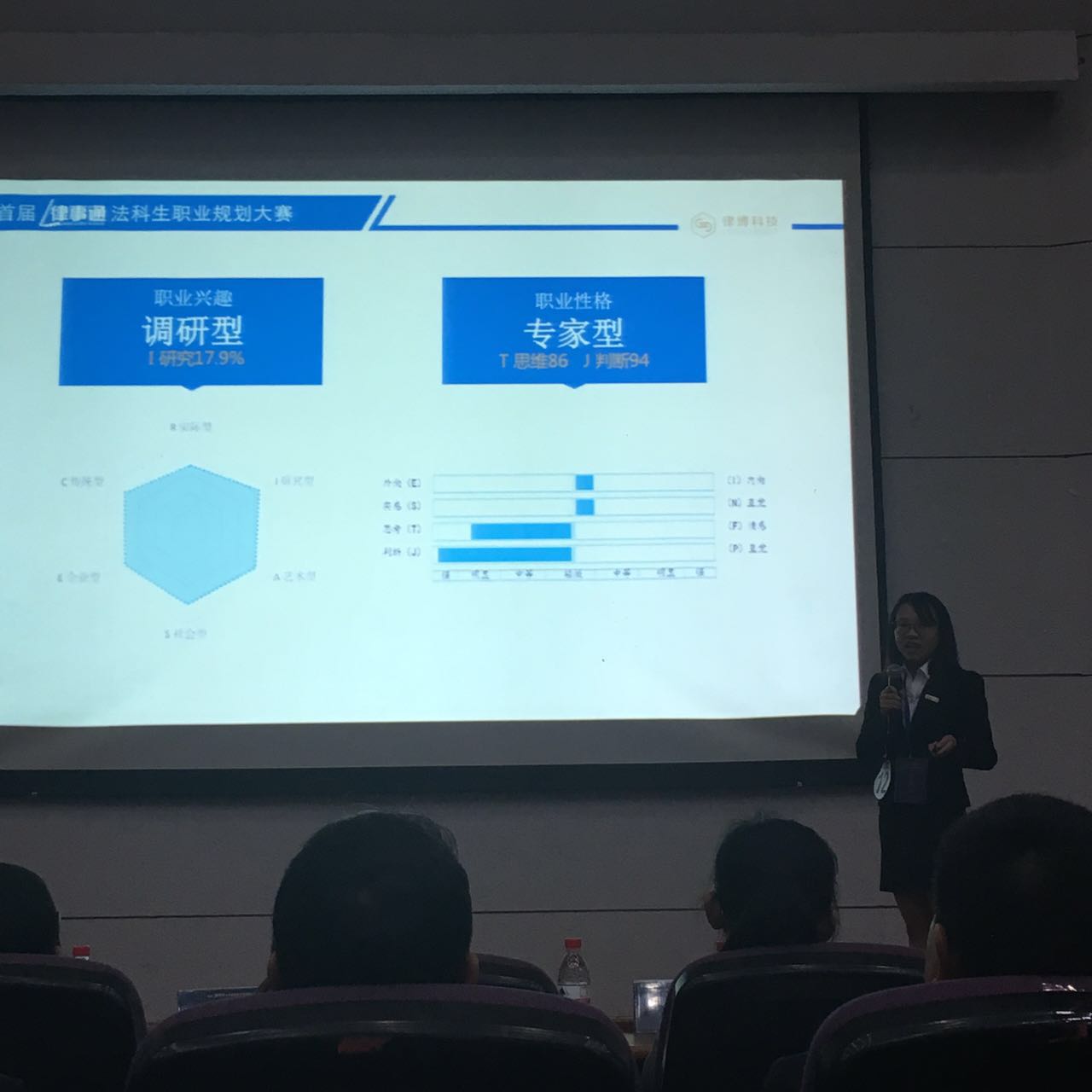 夏君洁同学以“平常心”和“进取心”为切入点,就法科生的职业发展做了精彩陈述和演讲。凭借过硬的专业技能和良好的舞台形象展示,最终以总成绩第一获得研究生冠军,同时斩获本次大赛的最佳形象奖。