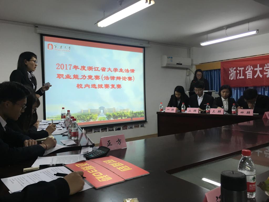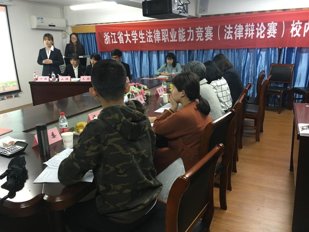 4月26日,浙江省大学生法律职业能力竞赛(法律辩论赛)校内选拔赛复赛在金沙娱乐网