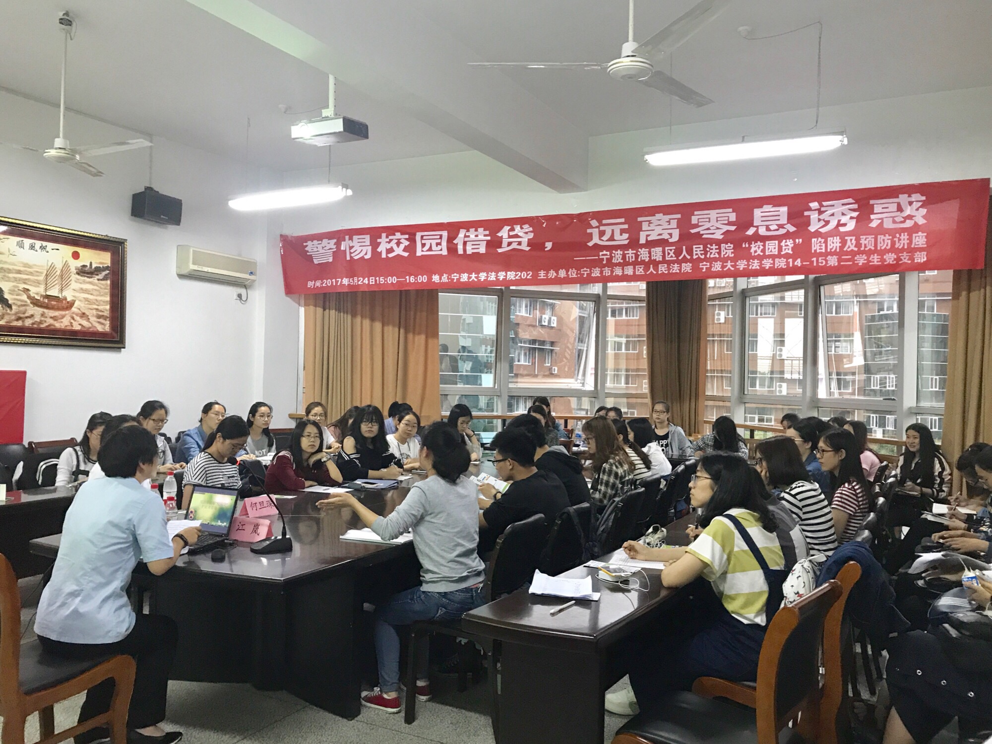 14-15第二学生党支部与宁波市海曙区人民法院主办的“校园贷”陷阱及预防讲座在金沙娱乐网