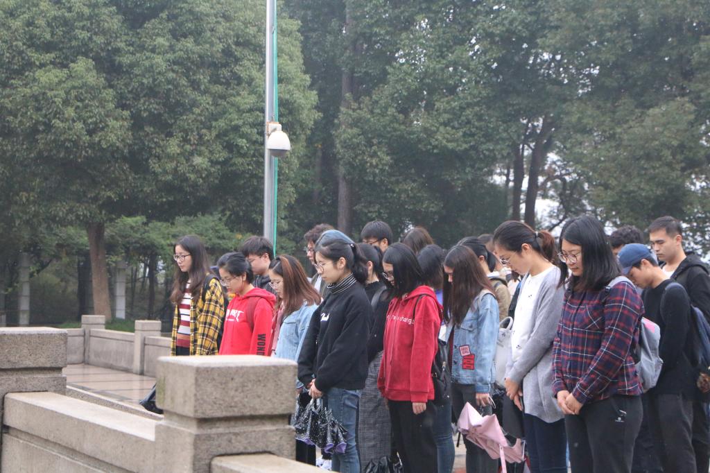 最后,同学们在雨中排着整齐的队伍有序地绕革命烈士纪念碑一周,然后静静地肃立瞻仰着革命烈士纪念碑,为革命先烈们默哀,深切缅怀为民族解放和人民革命事业献身的革命先烈。活动尾声,孙芬娜老师分别用毛泽东和邓小平同志的两句话激励大家,希望我们像前辈和革命先烈一样,永远当一个革命者,永远当一个为人民大众的集体事业服务的社会主义者,永远当一个共产主义者。