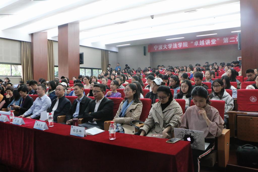 师生带开了“卓越讲堂”第二讲。共青团宁波市委副书记、市青联主席李锋,市青联秘书长郦盼,市青联常委、法律界别组组长杜晶,市青联委员、奉化区人民法院党组书记、院长赵江涛,市青联委员、宁波杉杉股份有限公司法务总监惠颖,市青联委员、浙江导司律师事务所高级合伙人庞俭力受邀出席了本次讲座,同时还有金沙娱乐网