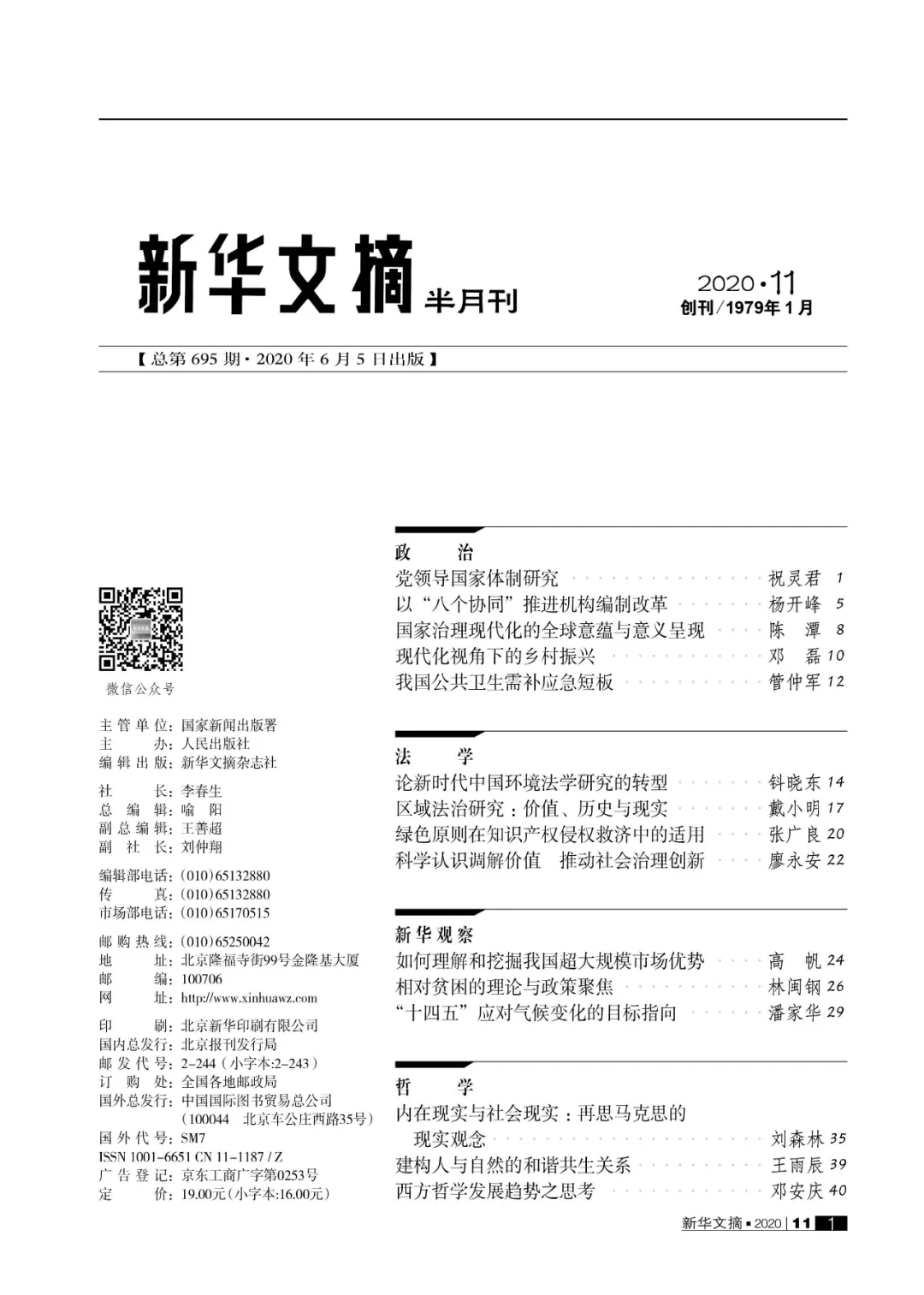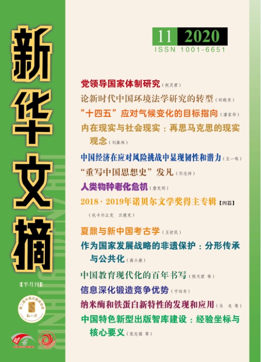 此文被《新华文摘》选为封面文章,也是自2017年以来,钭晓东教授第二篇被《新华文摘》全文转载的文章。