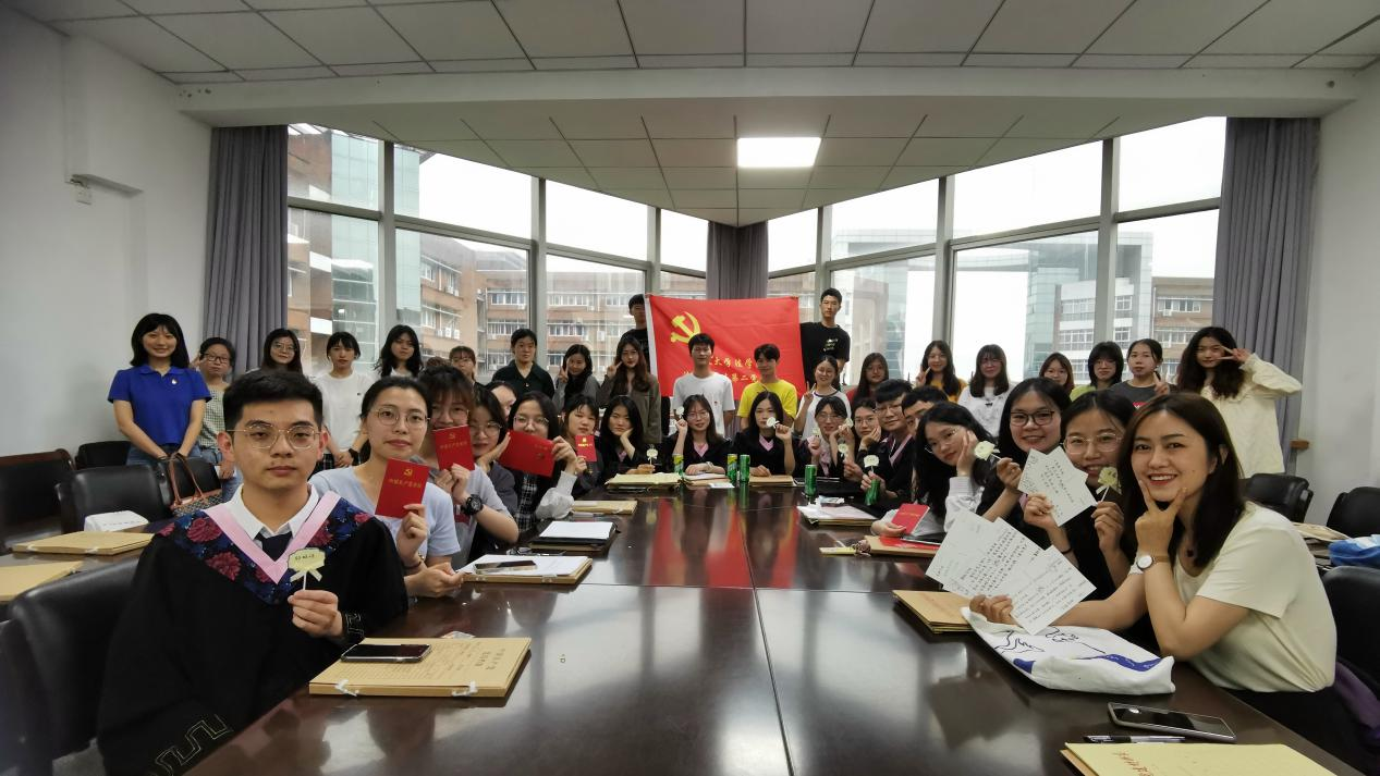 在此次活动的尾声,大二、大三的党员为毕业生党员送上提前准备的明信片,致以真挚的祝福,支部全体党员合影留念。通过此次党日活动,学生第二党支部全体党员回首初心、坚定信念,凝聚力、向心力大大增强。