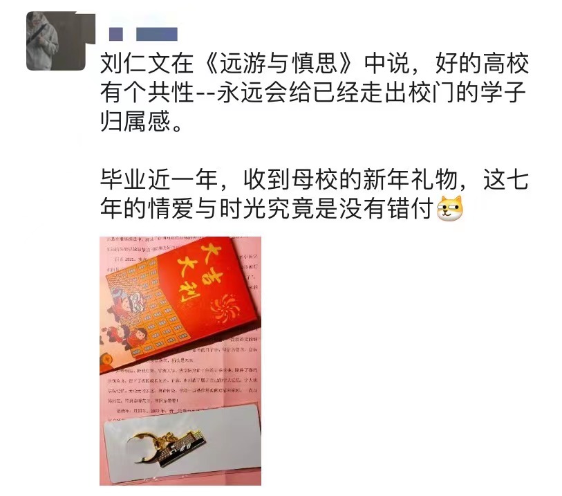 的礼物,还是很感动的”、“来自宁大的小细节,毕业生也没有被忘记”、“毕业近一年,收到母校的新年礼物,这七年的情爱与时光究竟是没有错付”,无论是本科生,还是研究生,纷纷在朋友圈“炫”出了惊喜。除了“一封家书”,金沙娱乐网