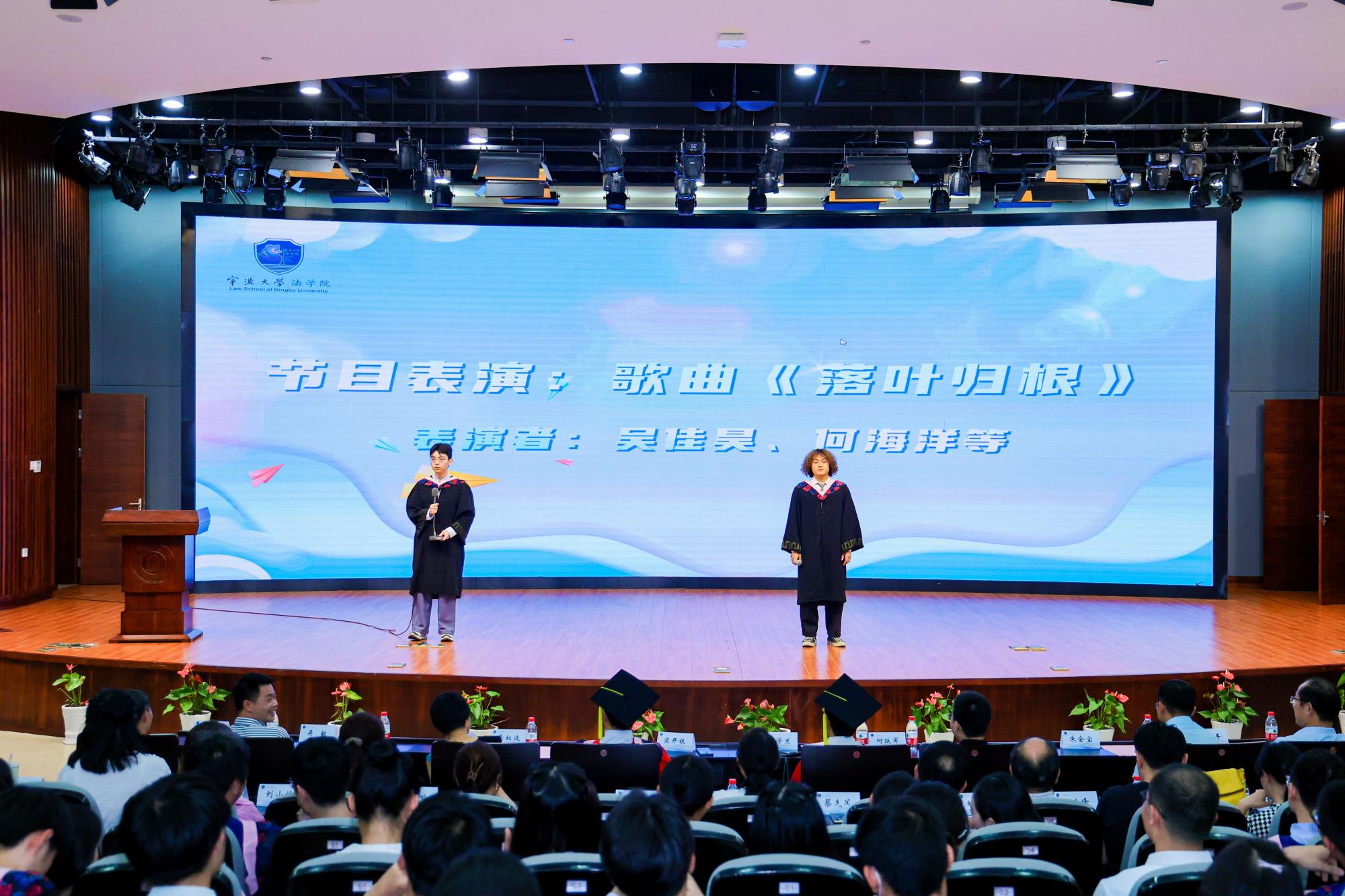 让我们记住今天出现在我们毕业欢送会上的每一张笑脸,彼此珍重,今后就是我们立足社会的朋友圈,就是我们值得信赖与合作的宁大人。不论走向或是海角,我们都有一个共同的身份:我们都是宁大法政人!