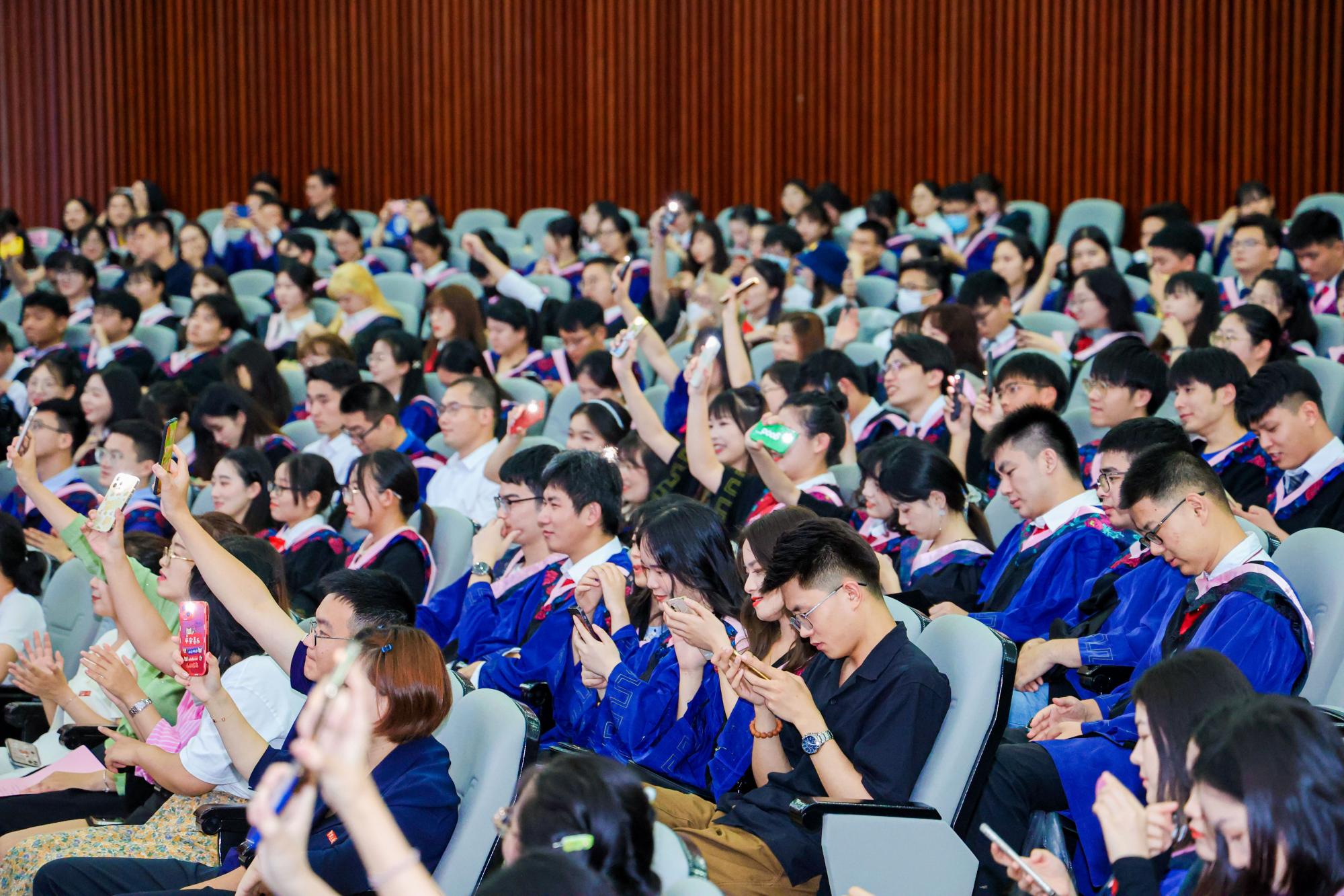 相关部门负责人、导师代表、全体2022届毕业生近400人参加了欢送会。欢送会由2018级本科生毕业生余函璐和2019级硕士研究生毕业生陈金阳主持。