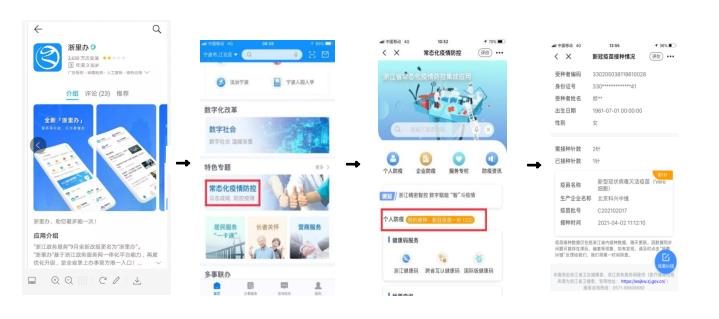 ①省内人员请事先在浙里办APP查询第一针接种信息,确认第一针接种时间和疫苗种类:【浙里办】金沙娱乐城→常态化疫情防控→个人防疫:我的接种。并截图留底。在接种疫苗当天签署知情同意书后将接种第一针的疫苗信息截图提供给医务人员核对、录入。