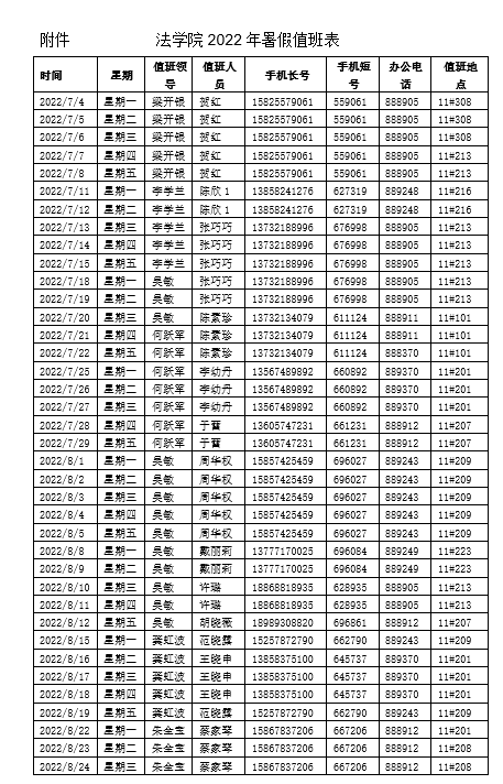 值班安排见附件,值班教师须确保周一至周五每天到指定地点值班,值班时间为每天8:30-16:00。