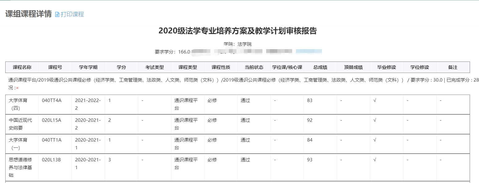 登陆网上办事大厅-搜索“学业完成查询”-点击“重新计算”-点击“查看详情”,进入界面后,再次点击“查看详情”可以查看详情的审核报告。