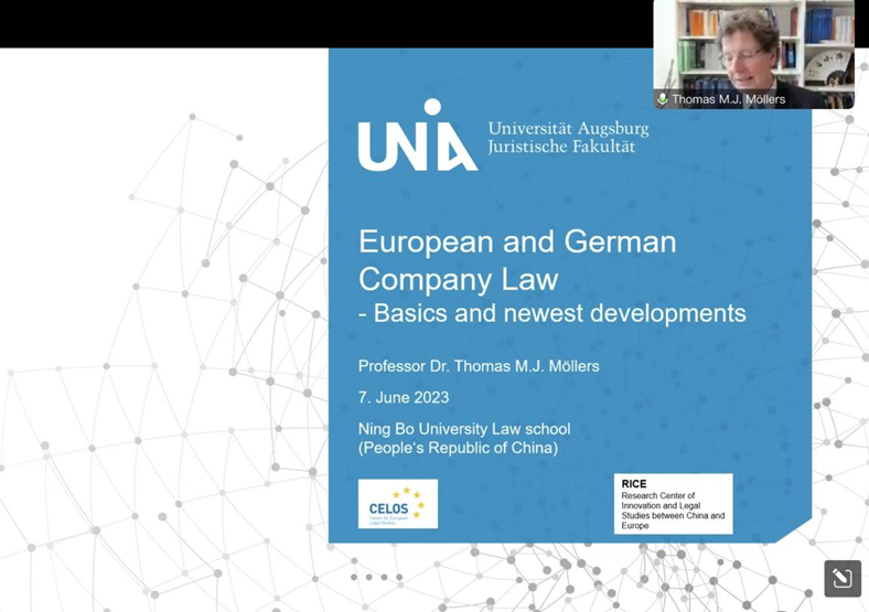 民法、经济法、欧盟法、国际私法、比较法和法学方法论教席教授,德国奥格斯堡大学欧洲法律研究中心主任,德国奥格斯堡大学中欧创新与法律研究中心主任Thomas M. J. Möllers 托马斯·默勒斯教授主讲,以“欧洲和德国公司法”为主题,开展了一场线上学术讲座。讲座由金沙娱乐网