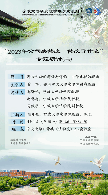 2023年12月29日,全国人大常委会作出《关于修改<中华人民共和国公司法>的决定》。本次《公司法》修订无论从涉及条文还是公司制度改革都具有重大的理论与现实意义。为深化对修订后的公司法的学习与理解,拟于2024年3月与4月安排四期系列性的专题研讨。研讨专题内容有: