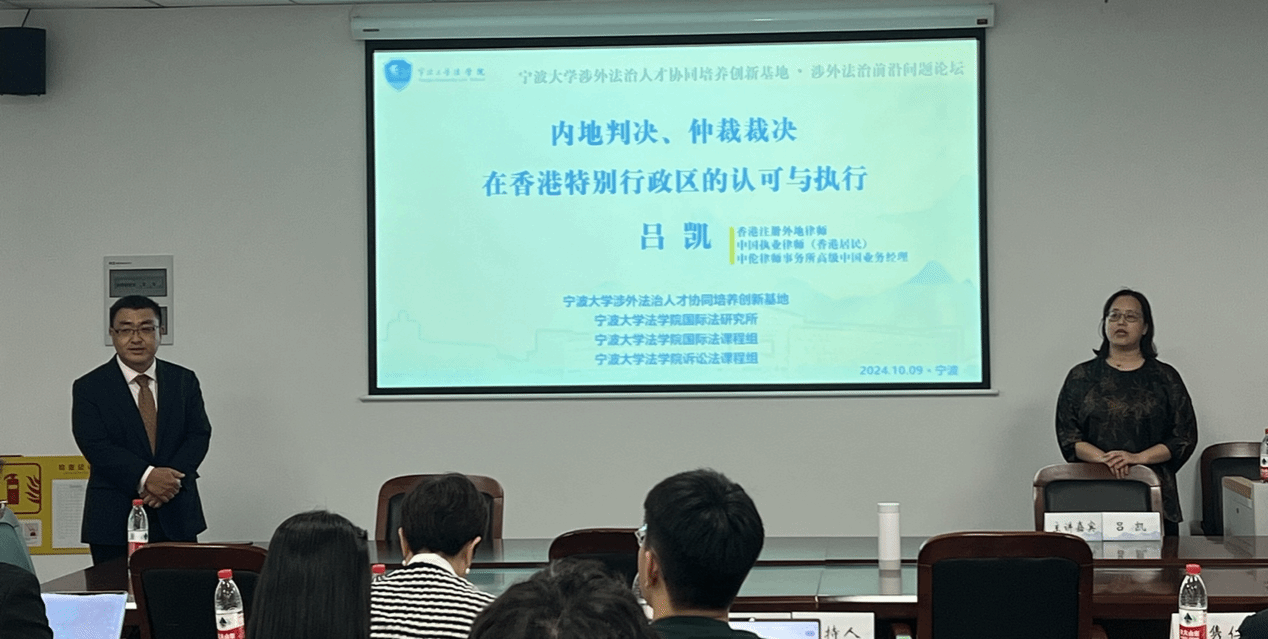 10月9日晚,浙东法学讲坛第四十八讲暨涉外法治前沿系列(三)“内地判决、仲裁裁决在香港特别行政区的认可与执行”讲座在法金沙娱乐网